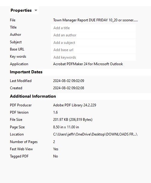 One document provided by the Town, dated October 17th, 2023, was scanned on August 2nd, 2024.